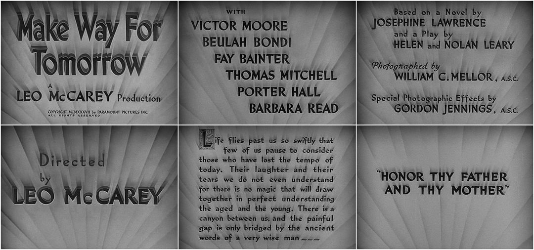 | titre original | "Make Way for Tomorrow" |